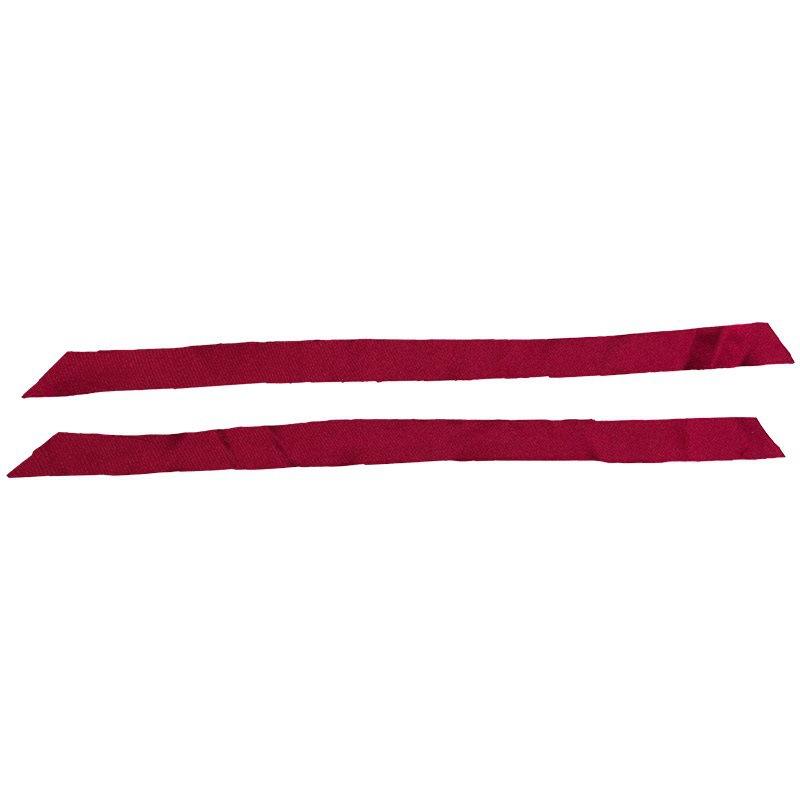 - A red ribbon is tied around the waist, adorned with a red flower.