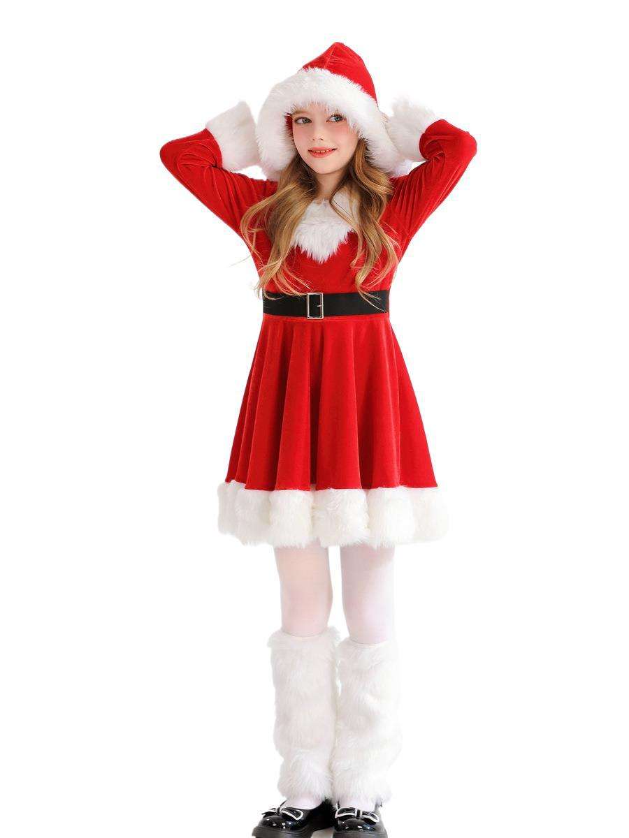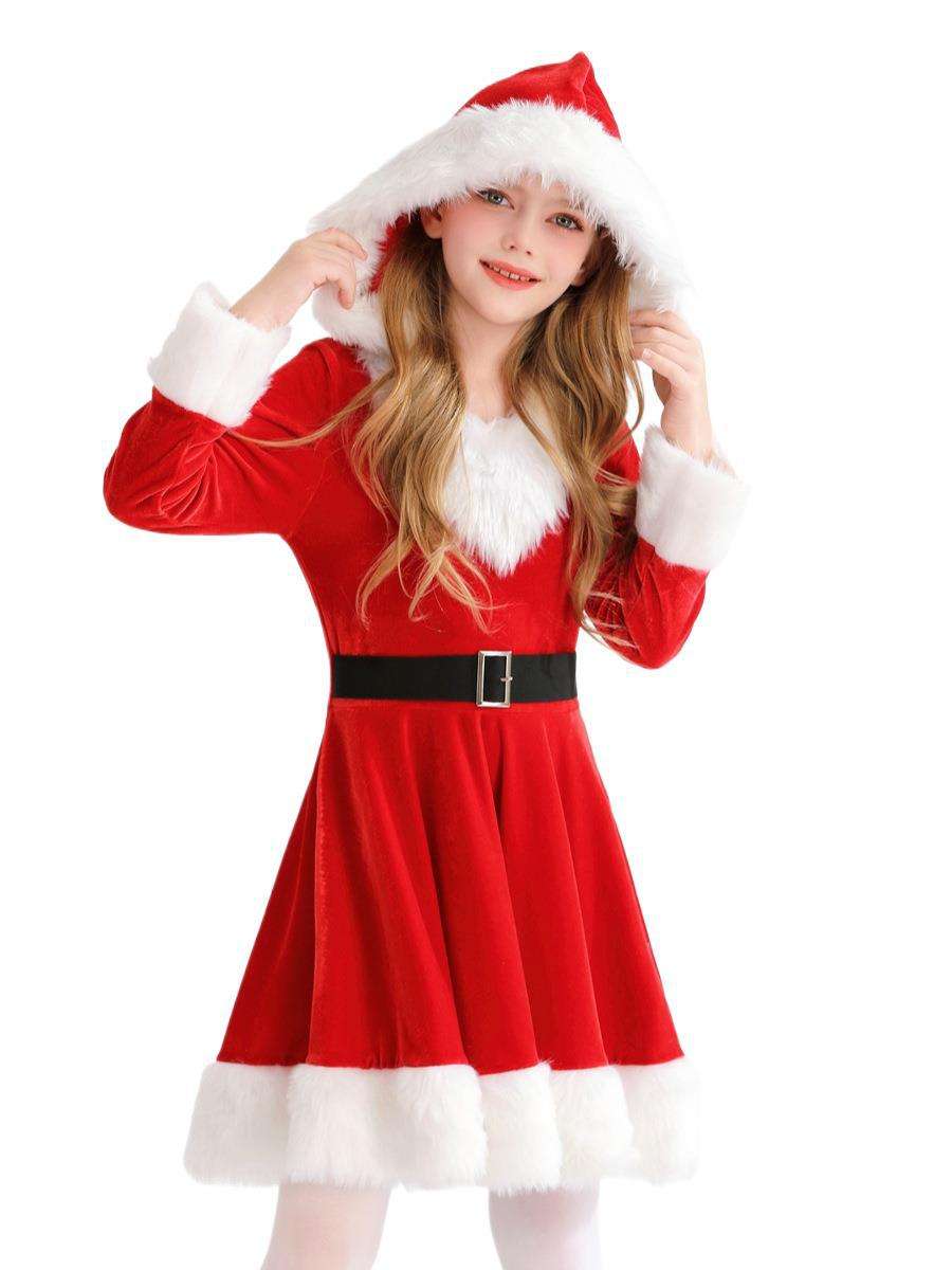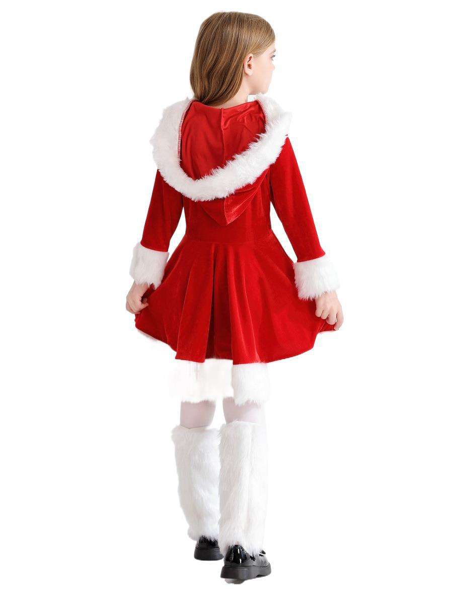 Christmas Girls Velvet Hooded Costume