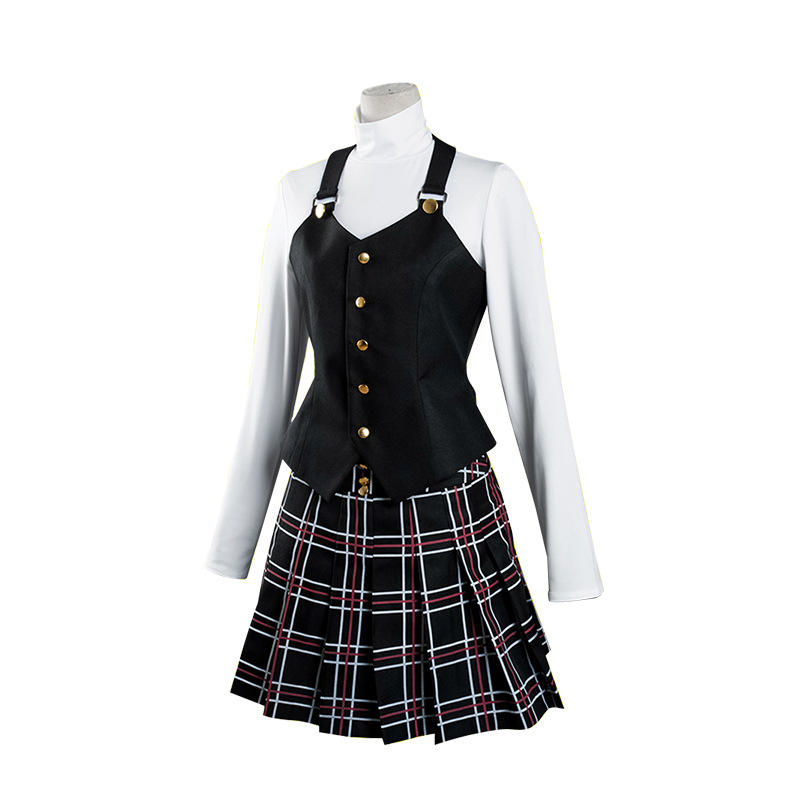 - The costume is made of soft and breathable fabric. The loose fit of the turtleneck inner top, suspender vest, and pleated short skirt won’t restrict body movements, making it convenient for wearers to walk, pose, and interact. Decorations such as golden buttons are reasonably designed and won’t cause pressure on the body.